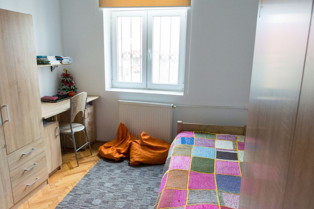 A kétszintes, beépített tetőteres kollégium 36 diáknak nyújthat szállást 2-3 ágyas szobákban.