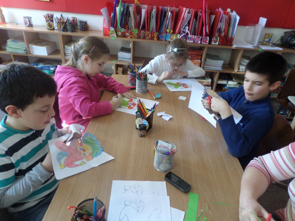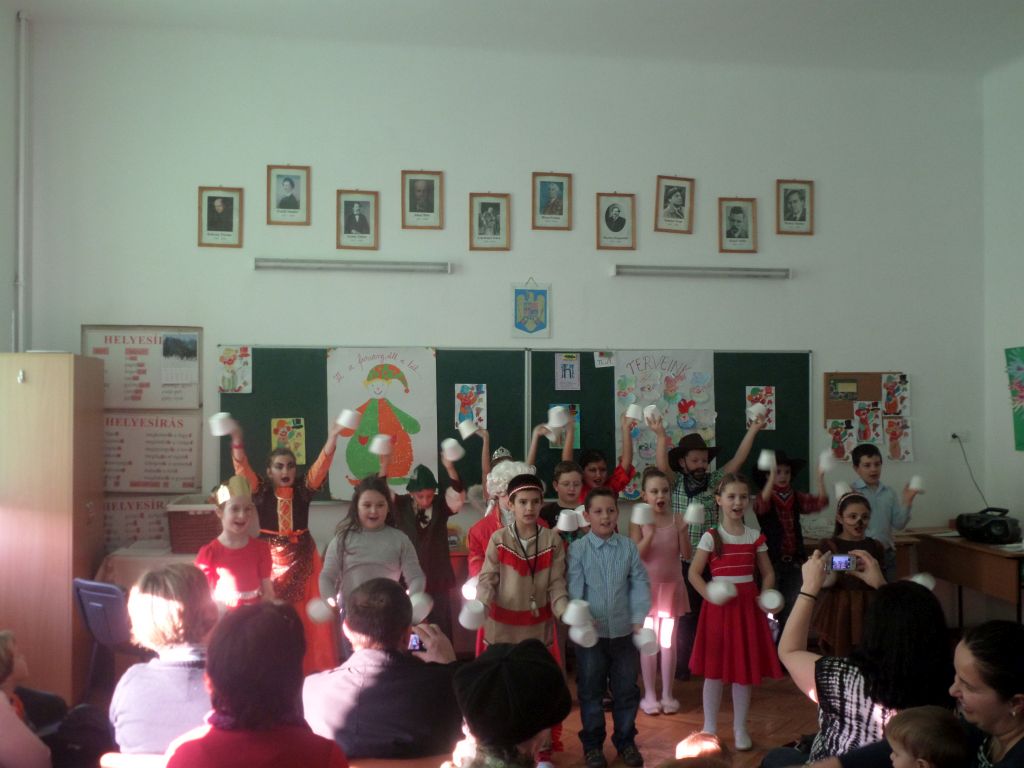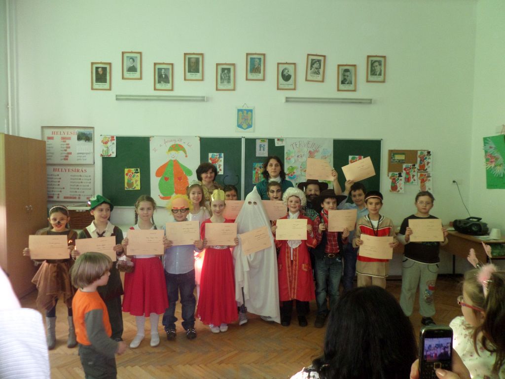 Visszatérve az osztályterembe bohóc mozaikképet alkottak, az Integráció Alapítvány jóvoltából magyarságismereti játékokkal játszottak, ugyanakkor megfogalmazták jövőbeli terveiket, és csoportonként képzeletbeli utazást is tettek Románia különleges épületeihez, melyeket 400 elemből építették meg. A délutáni órákban a szülők és a nagyszülők is csatlakoztak és közös farsangi mulatságnak voltak részesei, ahol a gyermekek bemutatták jelmezeiket, vidám táncukat, majd közös farsangi játékokat játszottak.