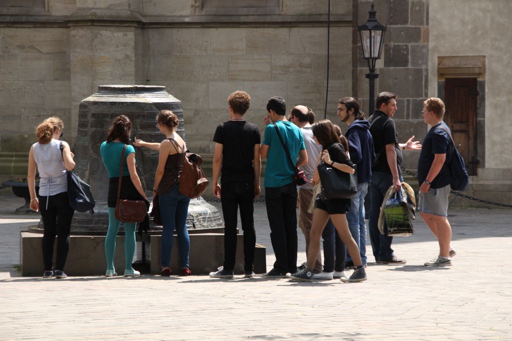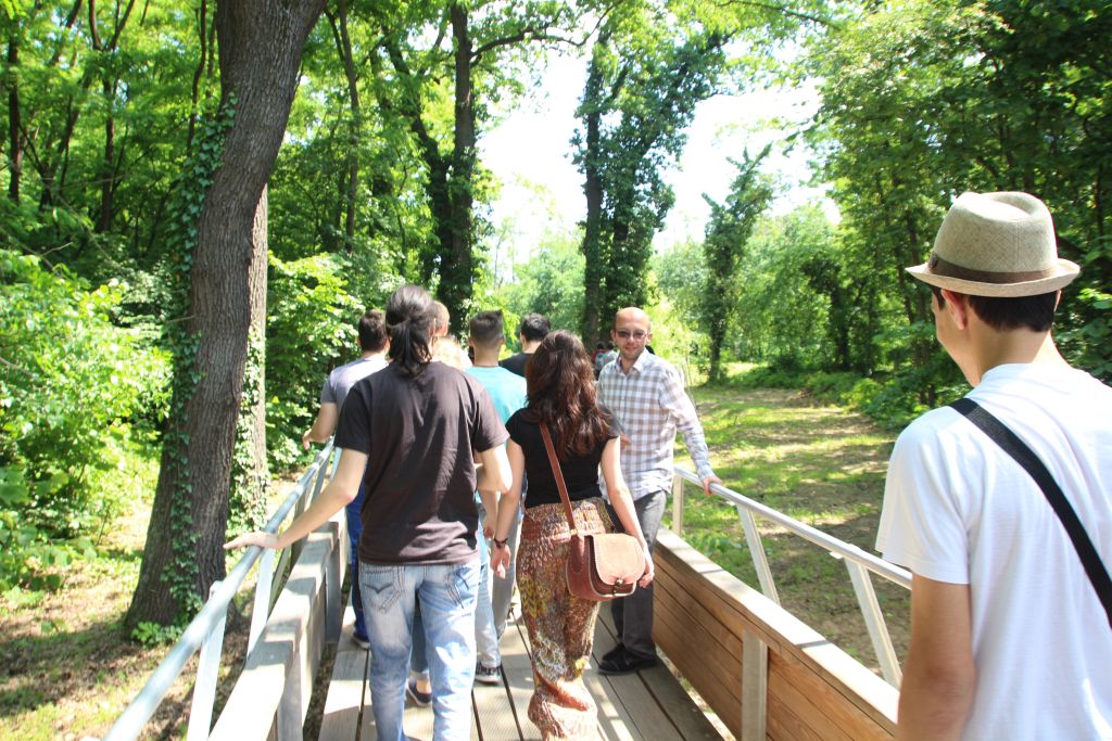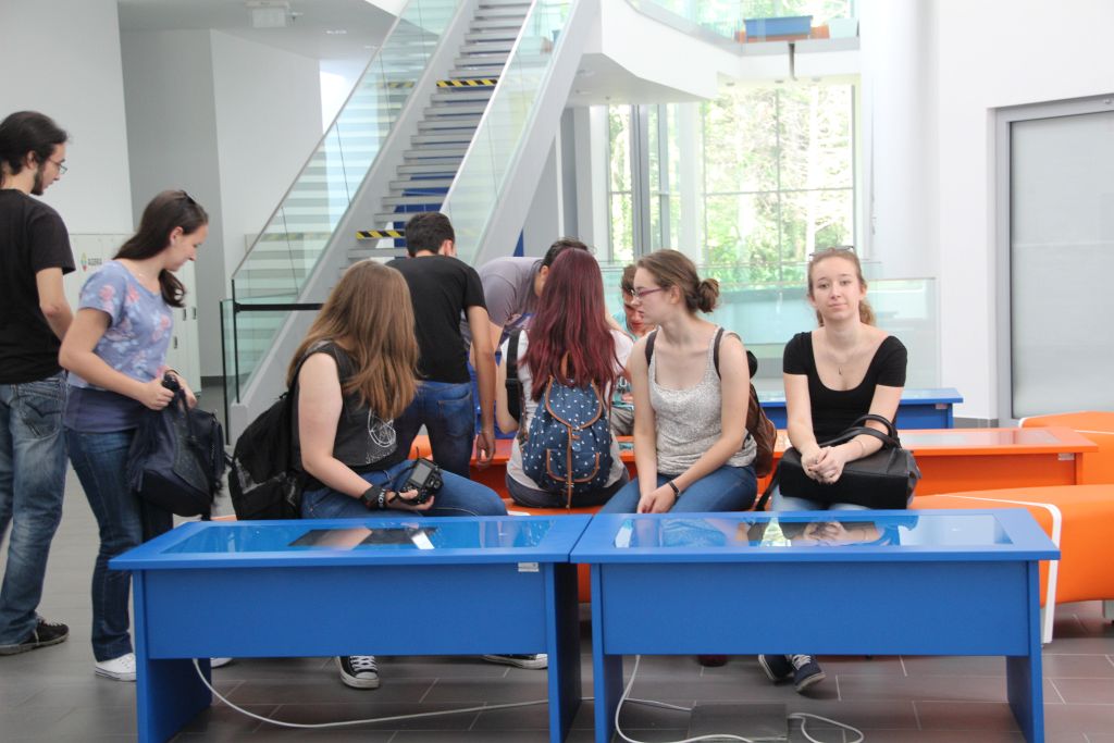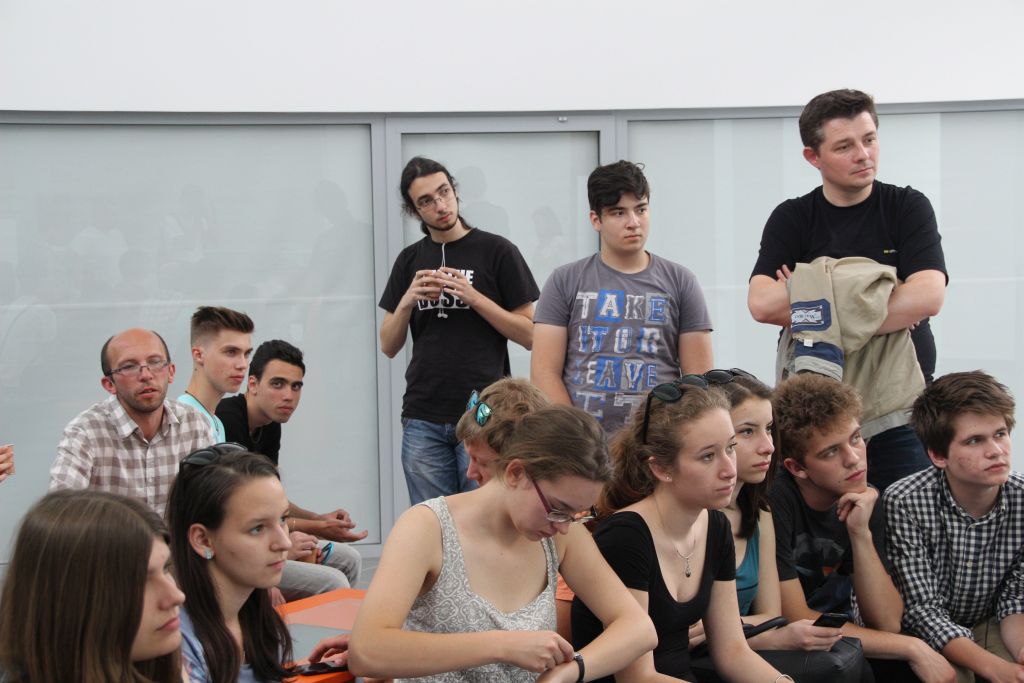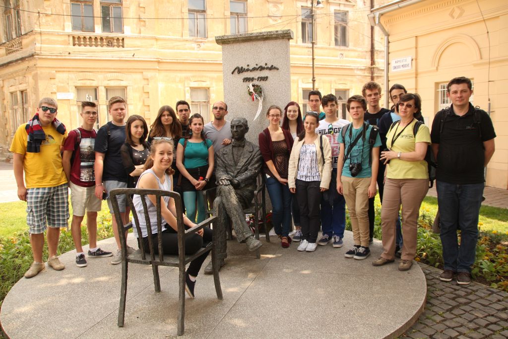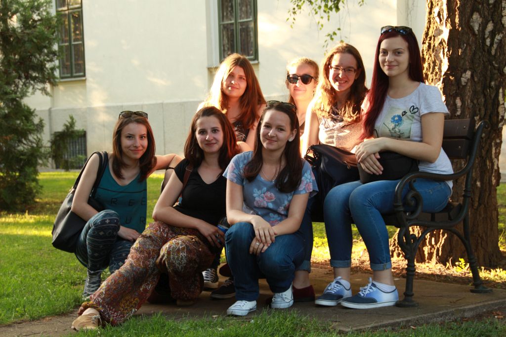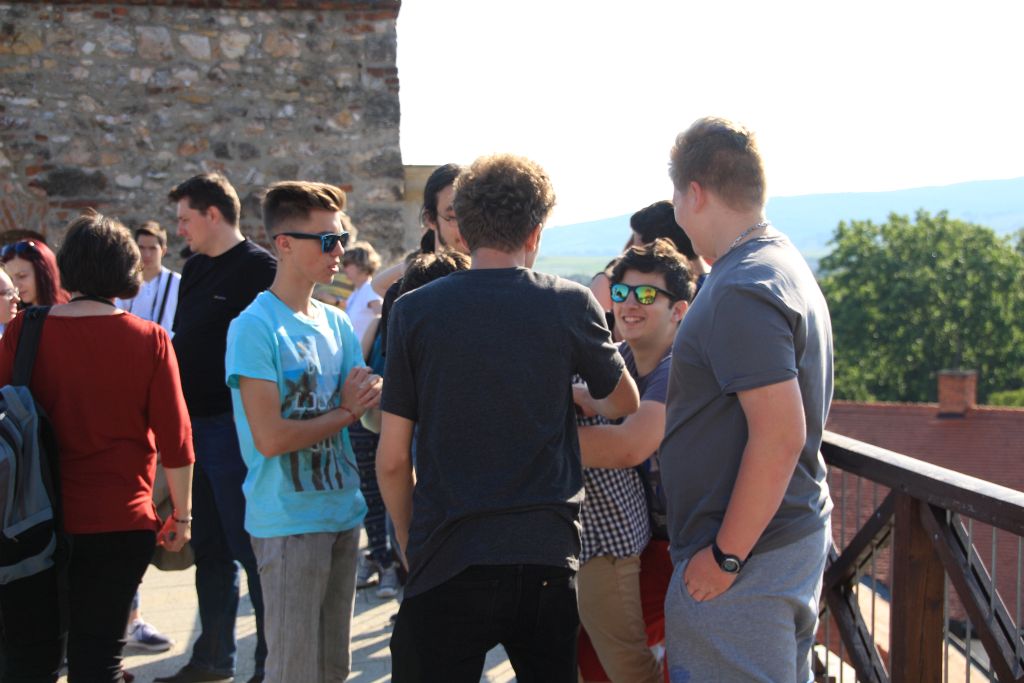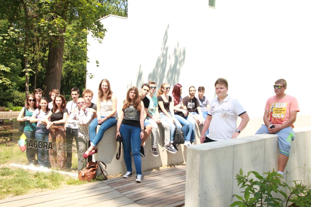 Hétfőn „iskolába” mentünk, de kivételesen nem Temesváron, hanem a testvériskolába, az Árpád Vezér Gimnáziumba. Nem mindennapi élmény egy Makovecz Imre, nemzetközi hírű építész által tervezett modern iskolába belépni. Az iskola igazgatója személyesen vezetett végig bennünket az iskolán és mutatta be történelmét és jelenét, az Arany János programot. Kipróbáltuk azt is, milyen egy ÁVG-s óra. A fizikai becslési versenyekről és zolti táborokból a bartókosok által is jól ismert Szeder László tanár úr, ezúttal informatika órán fogadott bennünket. A rendhagyó órán ÁVG-s és bartókos diákokból alakított programozási „team”-ek közösen írtunk grafikus Pascal programot.