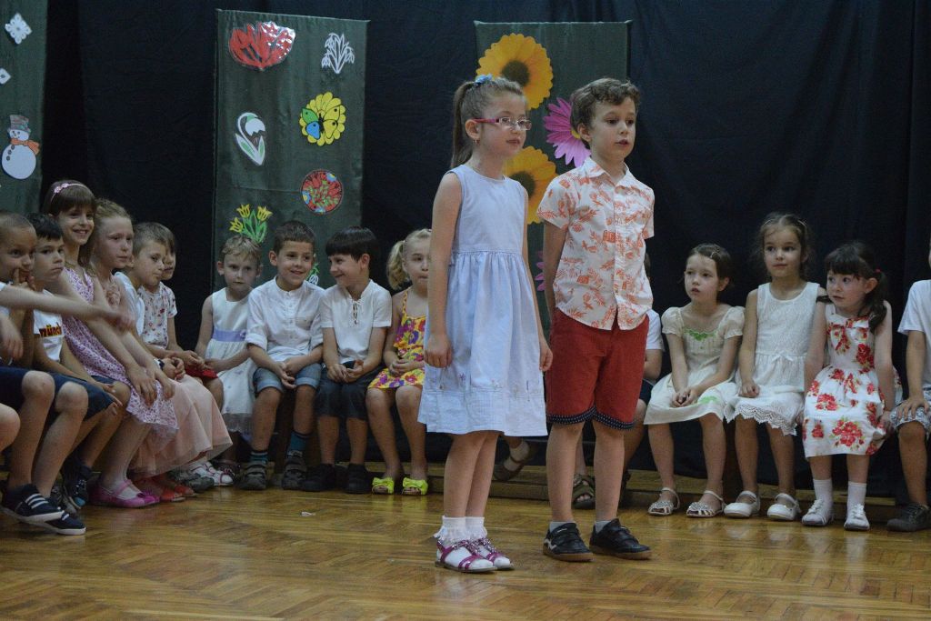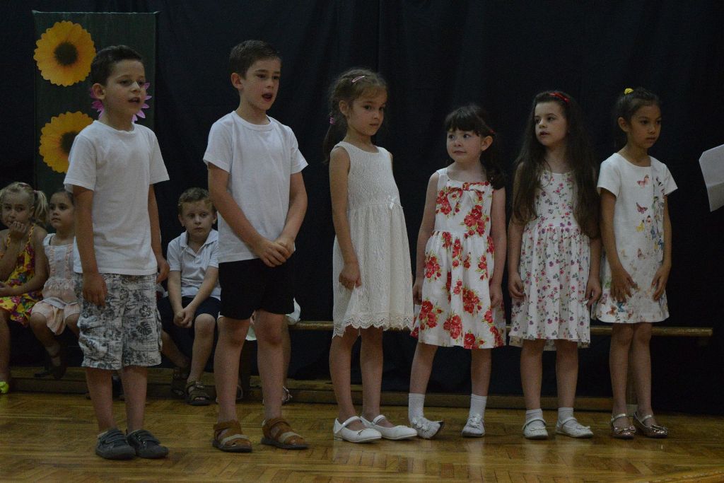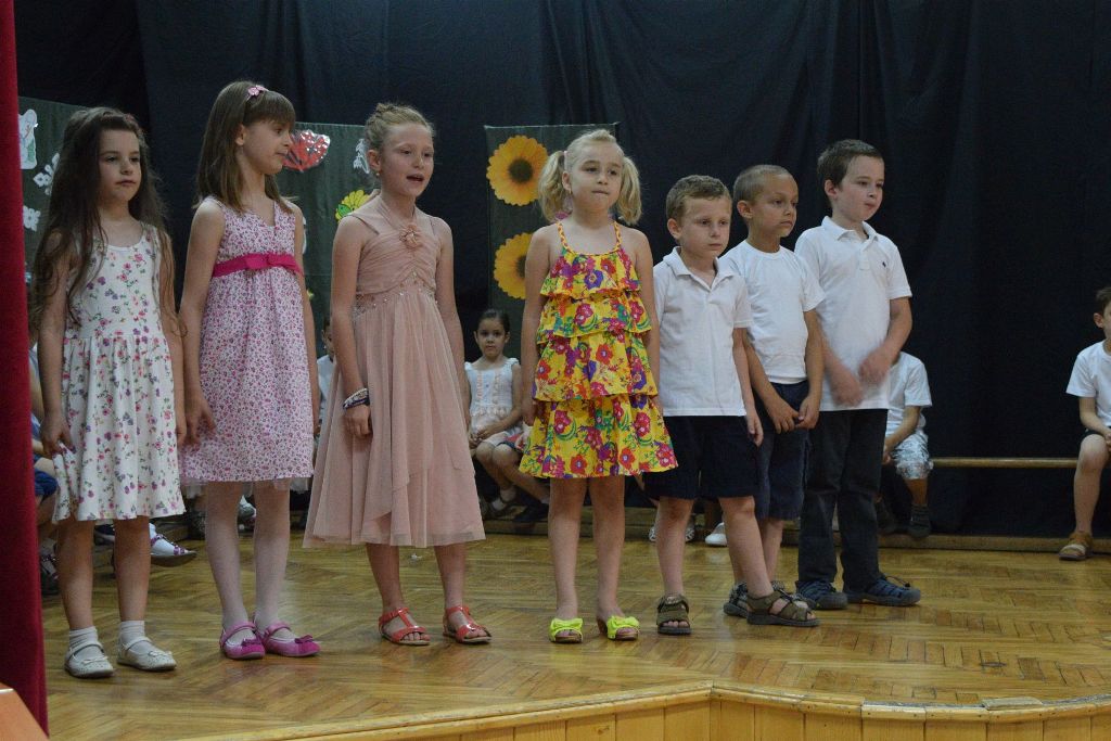 Iskolánk legkisebbjei vidám versekkel, mondókákkal, gyermekdalokkal, népi gyermekjátékokkal búcsúztatták az első iskolai tanévet.