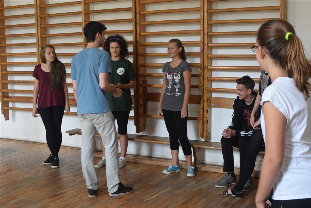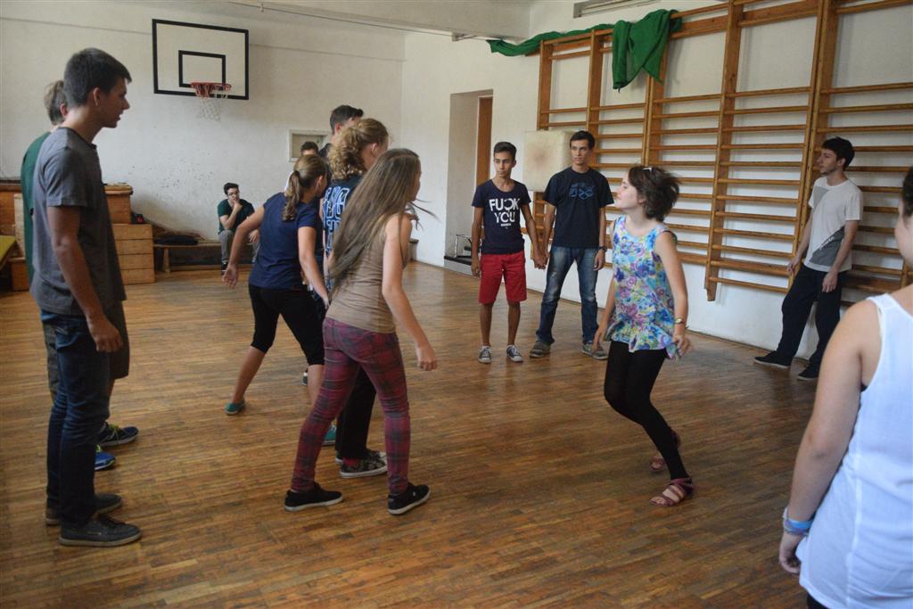 Mindhárom napnak megvolt a maga lényege, az első nap ismerkedtünk illetve próbáltunk minél jobban összerázódni beszélgetések és különböző gyakorlatok által. Szerdán főként a bizalomfejlesztés volt a cél. Csütörtök tanultunk egy pár tánclépést, majd kezdődhetett a kiscsoportos mini előadás előkészítése, bemutatása. A program értékeléssel zárult. Merem állítani, mindenki nevében, hogy Ábel és Zoltán, teljes mértékben megállták a helyüket a csoportvezetői állásban, felkészültek, komolyak, de mégis barátságosak, felszabadultak voltak. Türelemmel és kitartással fordultak felénk, s lám ennek meg is lett az eredménye, hisz három nap alatt nem csak egyénileg fejlődtünk, de “csoportból csapattá váltunk”. Köszönjük!