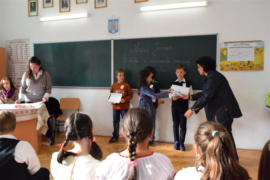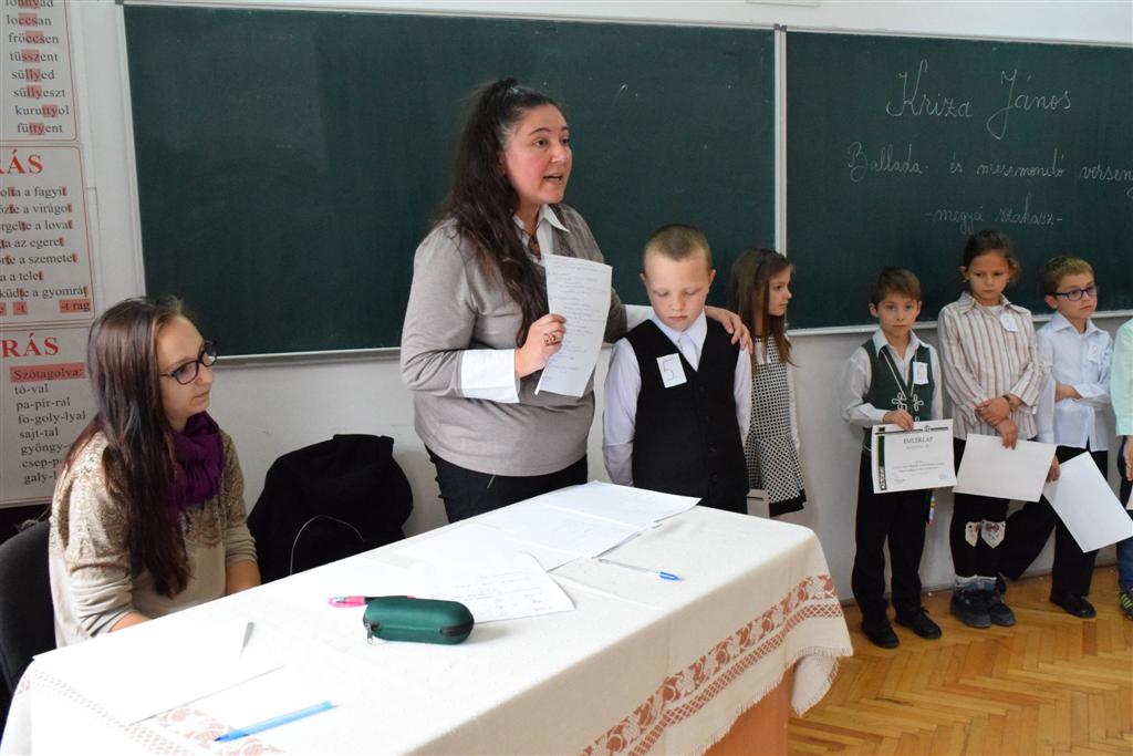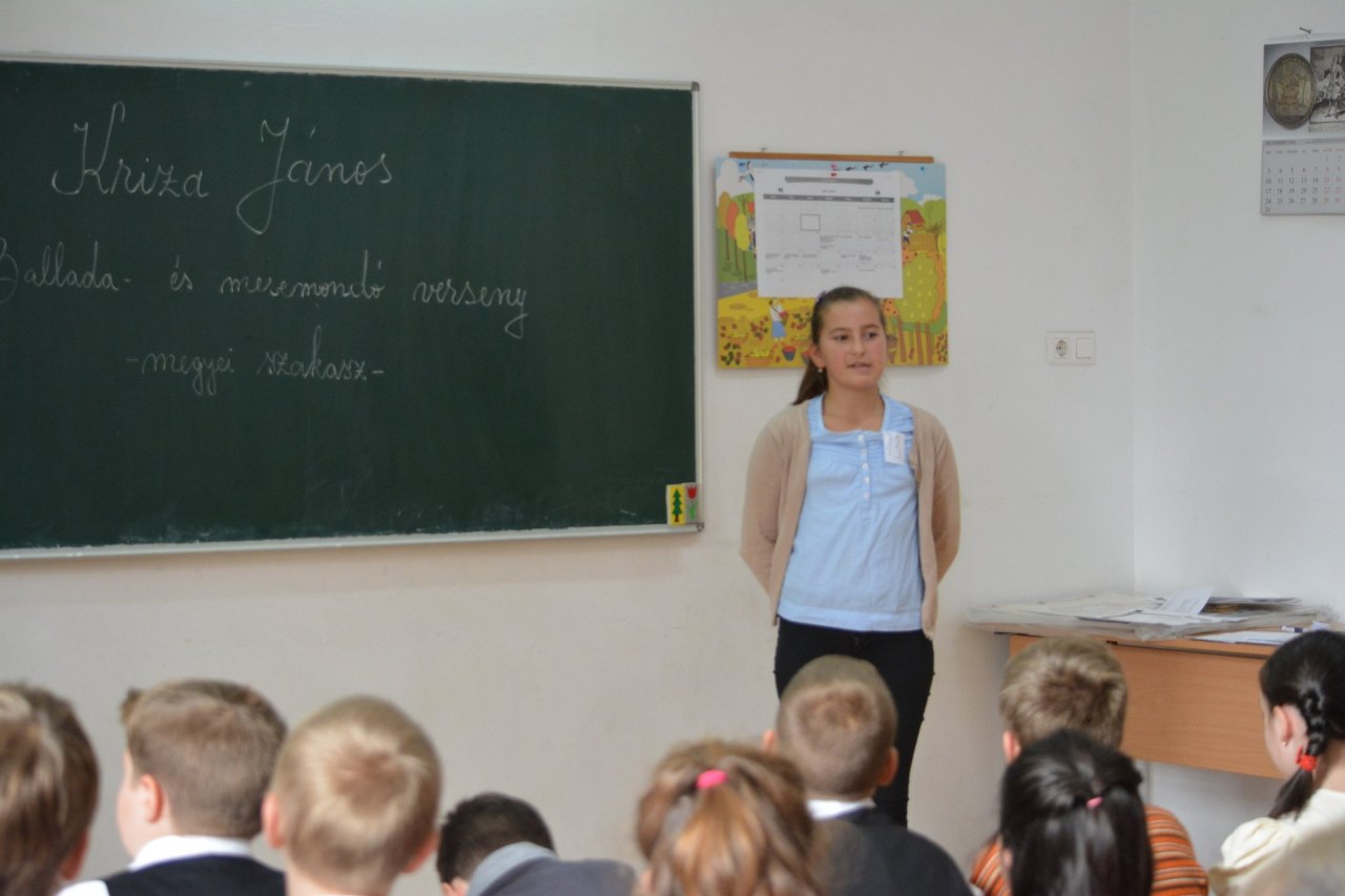 Október 19-én került sor a Kriza János Balladamondó, Balladaéneklő és Mesemondó verseny megyei szakaszára az I-IV. osztályos diákok számára. A versenyen a gyermekek egy-egy magyar népmesével örvendeztették meg a közönséget. Erdélyi Rita rádióműsor szerkesztő, Izmendi Emőke óvónő és Horváth Petra diák, akik a zsűri tagjai voltak, értékelték és hasznos tanácsokkal látták el az előadó kisdiákokat.