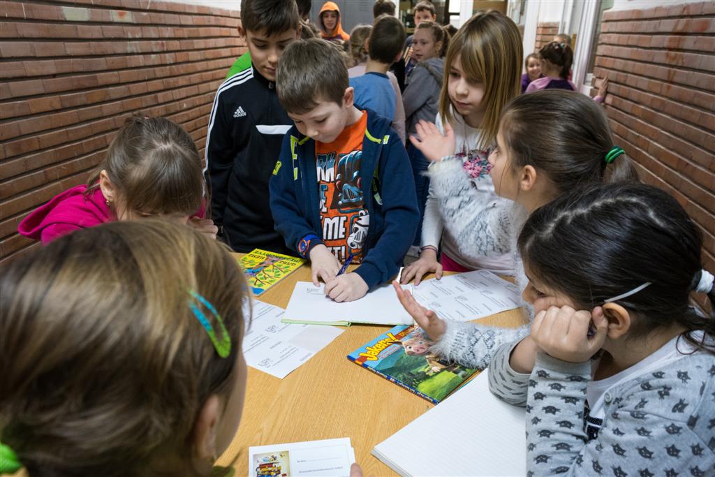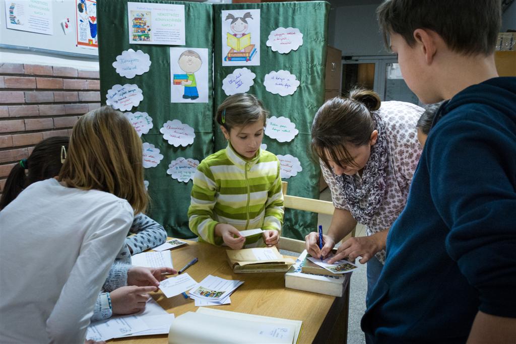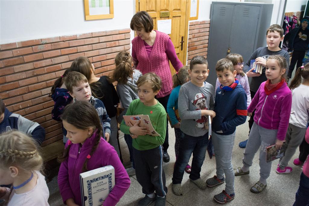 Február 14-én, a Nemzetközi Könyvajándékozás Napján, kisdiákok hosszú sora várakozott nagyszünetben iskolánk könyvtára előtt. Most az egyszer nem kölcsönözni, hanem könyvet ajándékozni jöttek. Harmadikos kis könyvmanók segítettek a könyvtáros néninek átvenni az adományozott könyveket. A nap végén örömmel tapasztaltuk, hogy 67 új könyvvel gazdagodott könyvtárunk.