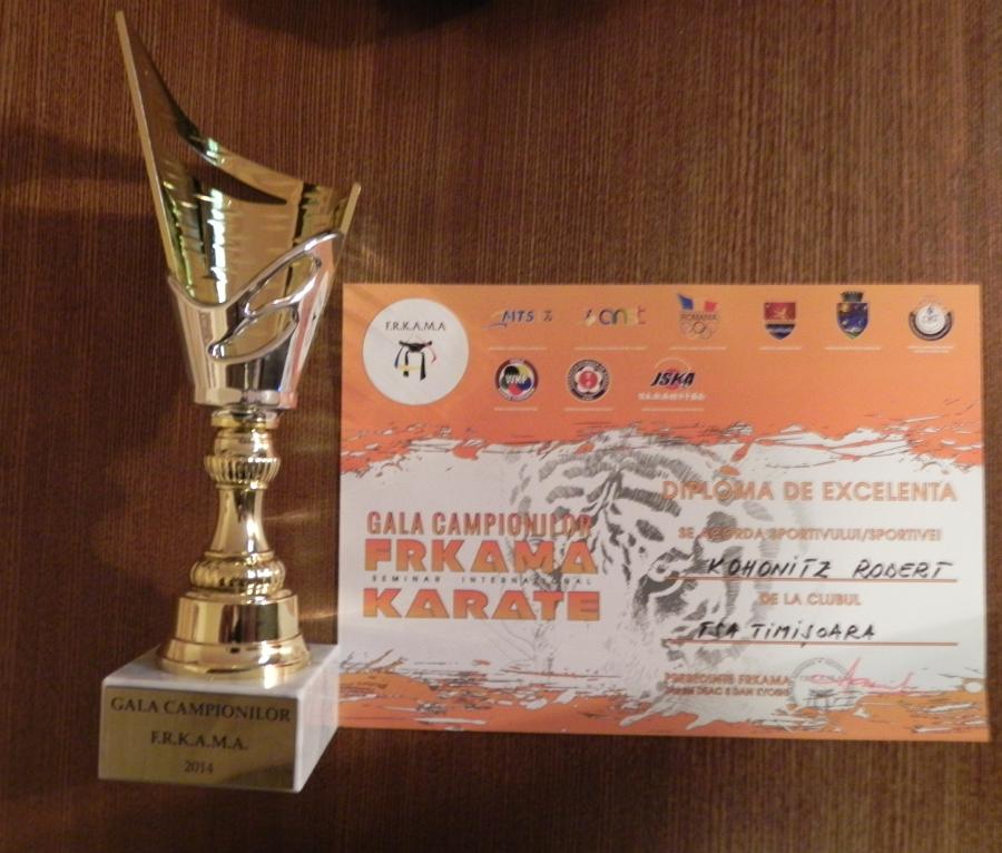 Pe 13 decembrie 2014, FRKAMA Federatia Romana de Karate si Arte Martiale Asociate, Timişoara, l-a premiat pe Kohonitz-Turbók Róbert pentru rezultatele excelente din anul 2014. Asadar, presedintele federatiei Shihan Dan Deac l-a premiat pe Robi cu diploma si cupa.