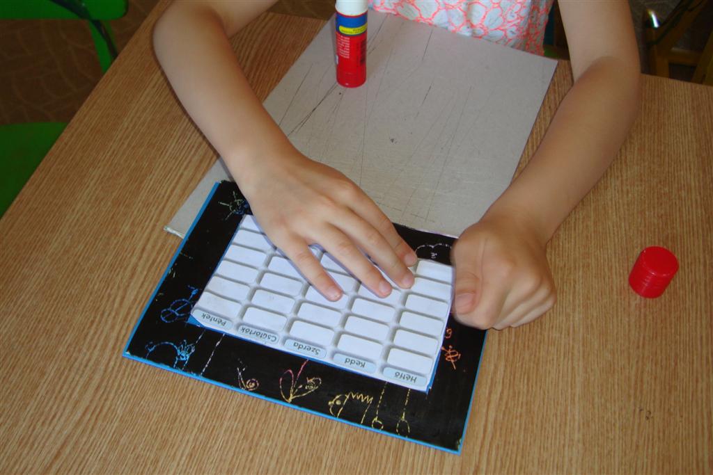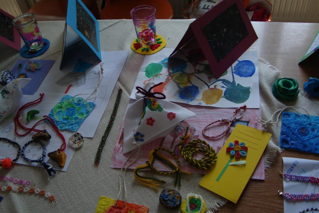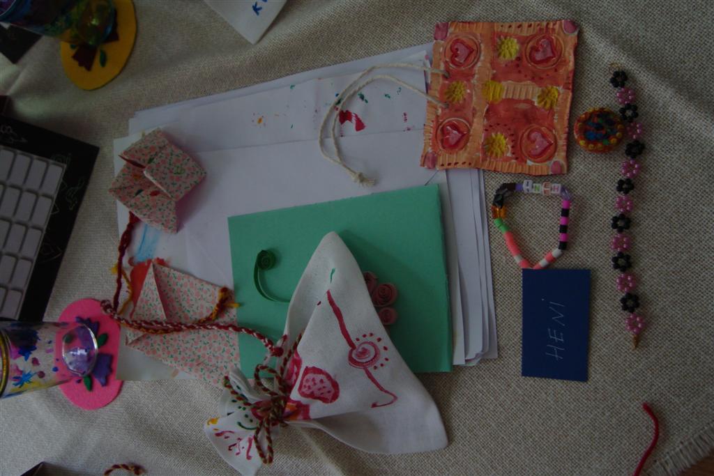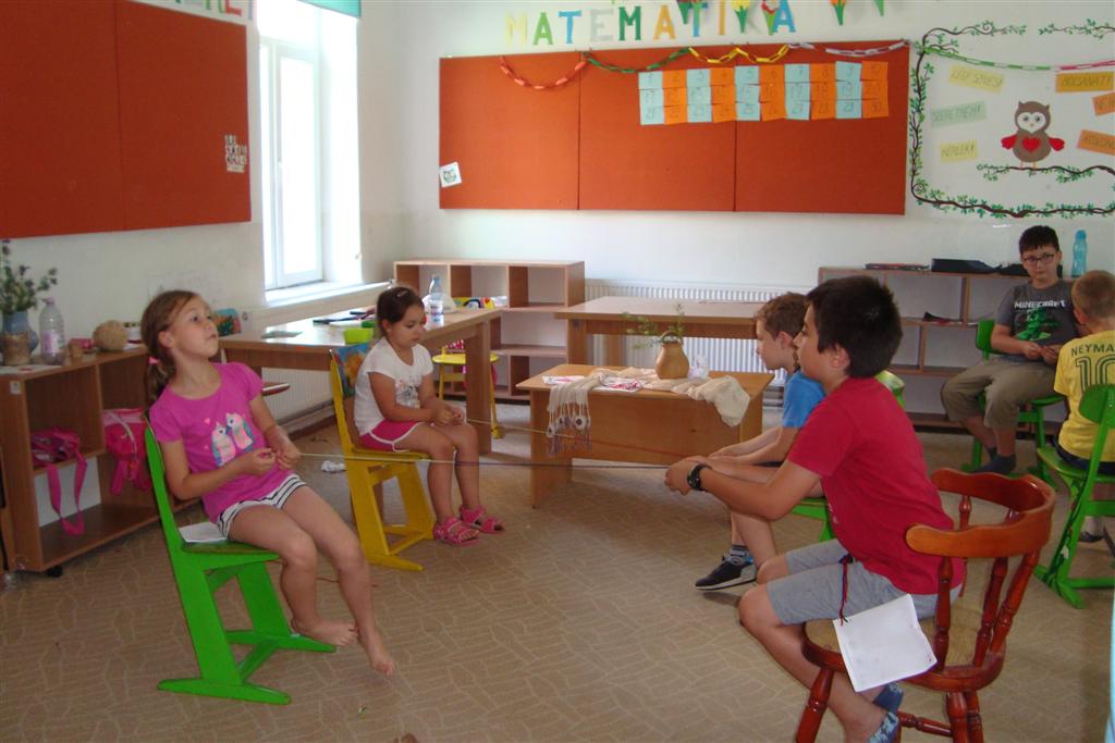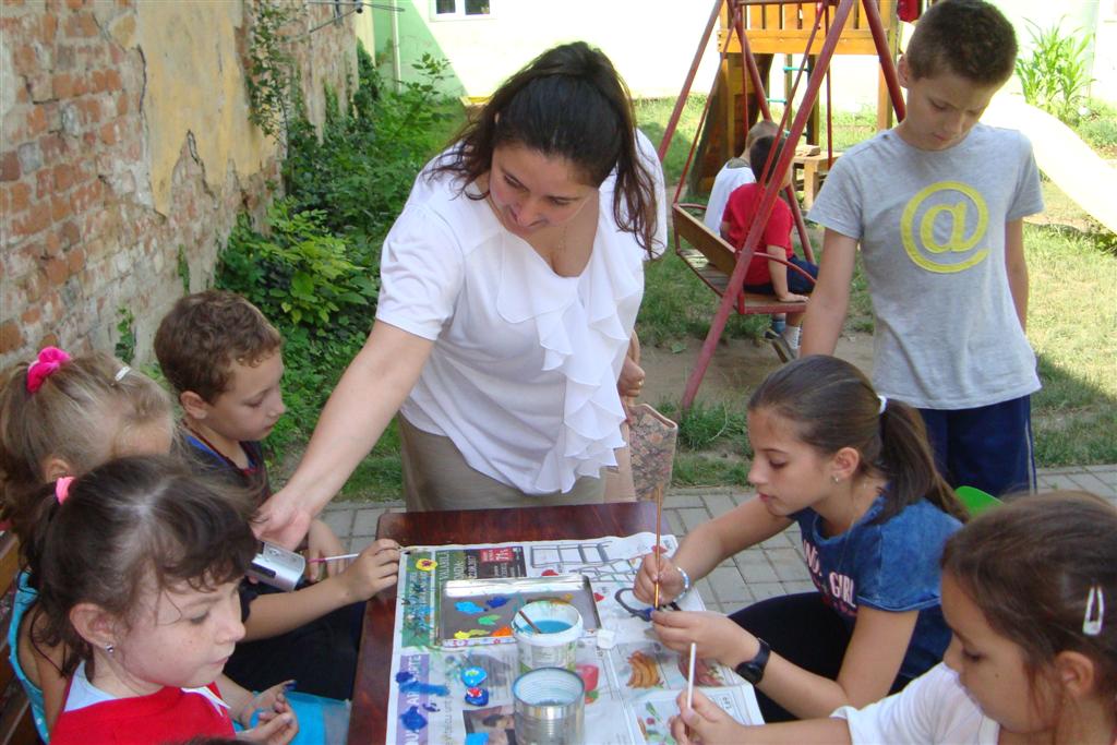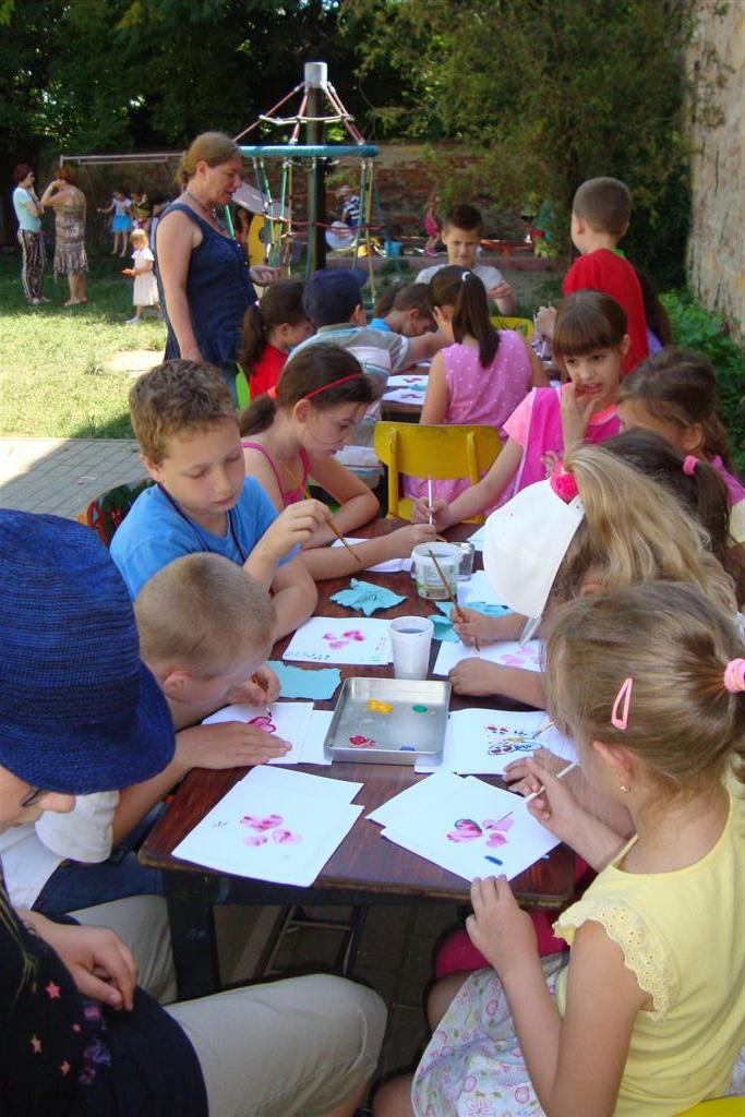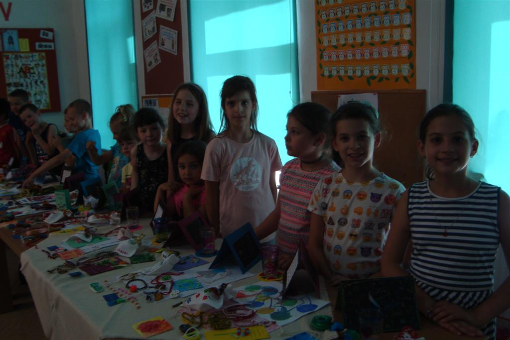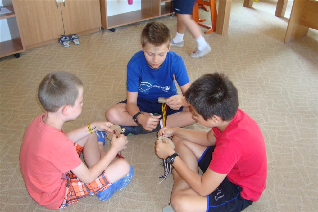 A vakáció első hetében népes gyereksereg alkotott és ügyeskedett a kézműves bejárótábor tevékenységein, volt aki nem először vett részt ilyen táborban, de voltak újoncok is. A tevékenységek szerepelt: barátságkarperec fonás, ujjbáb szövés, agyagozás, karc-rajz készítés, textilfestés, gyöngyfűzés, faldísz készítés és festés, quillingezés. Készítettünk filcből poháralátétet, valamint egyedi mintázatú üvegfestéssel díszítettünk poharat is mellé. A heti alkotó tevékenység a már megszokott táborvégi kiállítással zárult, amit a szülők is megtekinthettek.