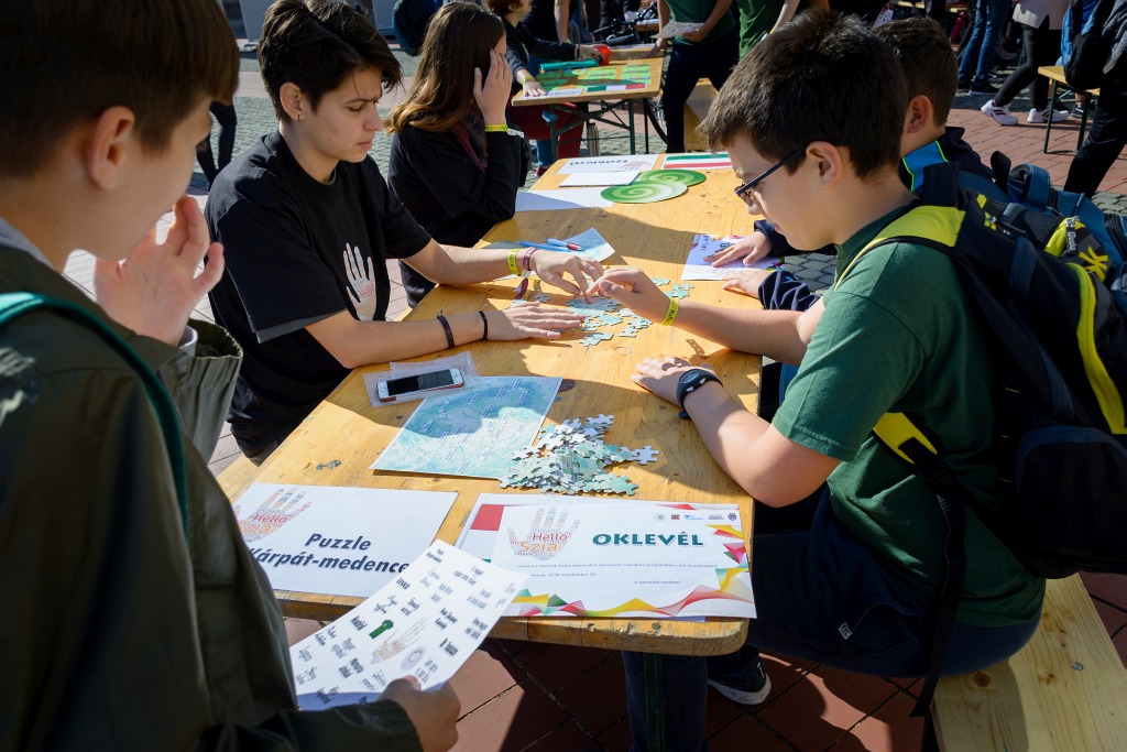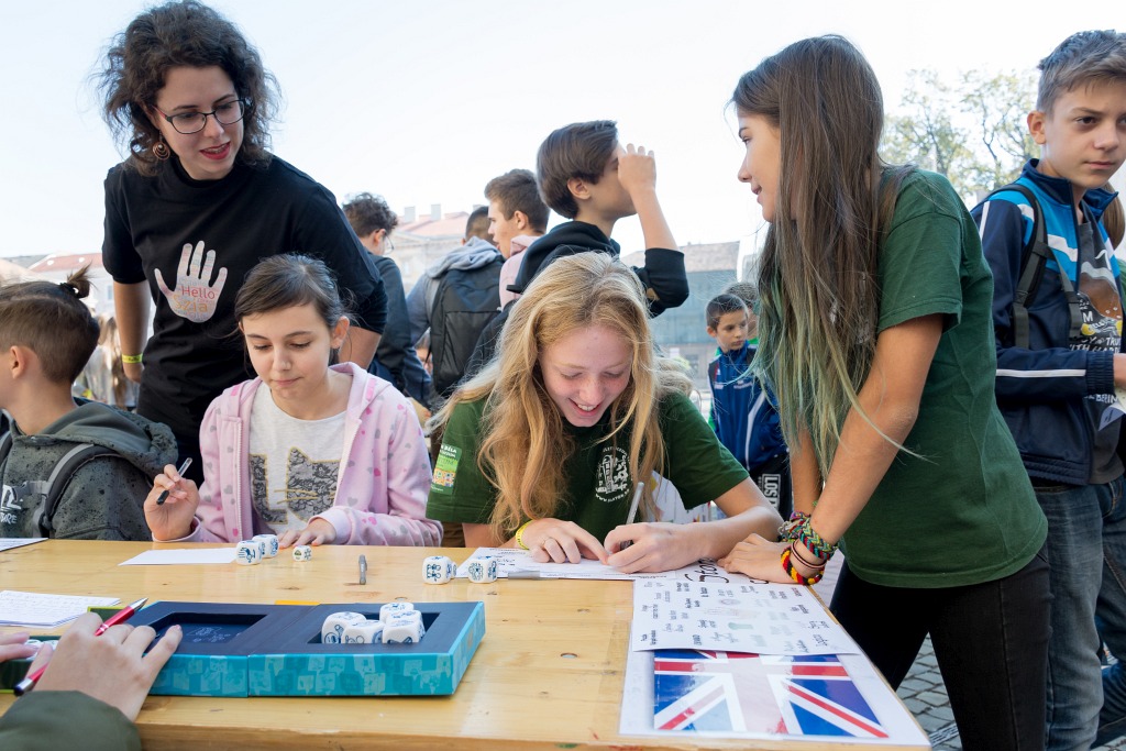 Az első alkalommal megszervezett Kreatív nyelvi játékok című program a nyelvi intelligencia, a játékos tanulás, a kommunikáció és a közreműködés jegyében zajlott szeptember 28-án. A műhelyeken belül diákjaink hat nyelven ( magyar, román, angol, német, francia, olasz) próbáltak ki különböző tevékenységet. Volt közöttük puzzle, karaoke, digitális szójáték, labirintus, szókígyó, de az experienciális tanulás sem maradt ki. A népi hangszerek és viseletek bővítették a program tevékenységeit. A 25 műhelyben 13 tanár , 27 önkéntes segítő diák és 150 felső tagozatos kíváncsi és ügyes résztvevő népesítette be a teret. A szorgos munkát finom kürtöskaláccsal jutalmazták a szervezők.