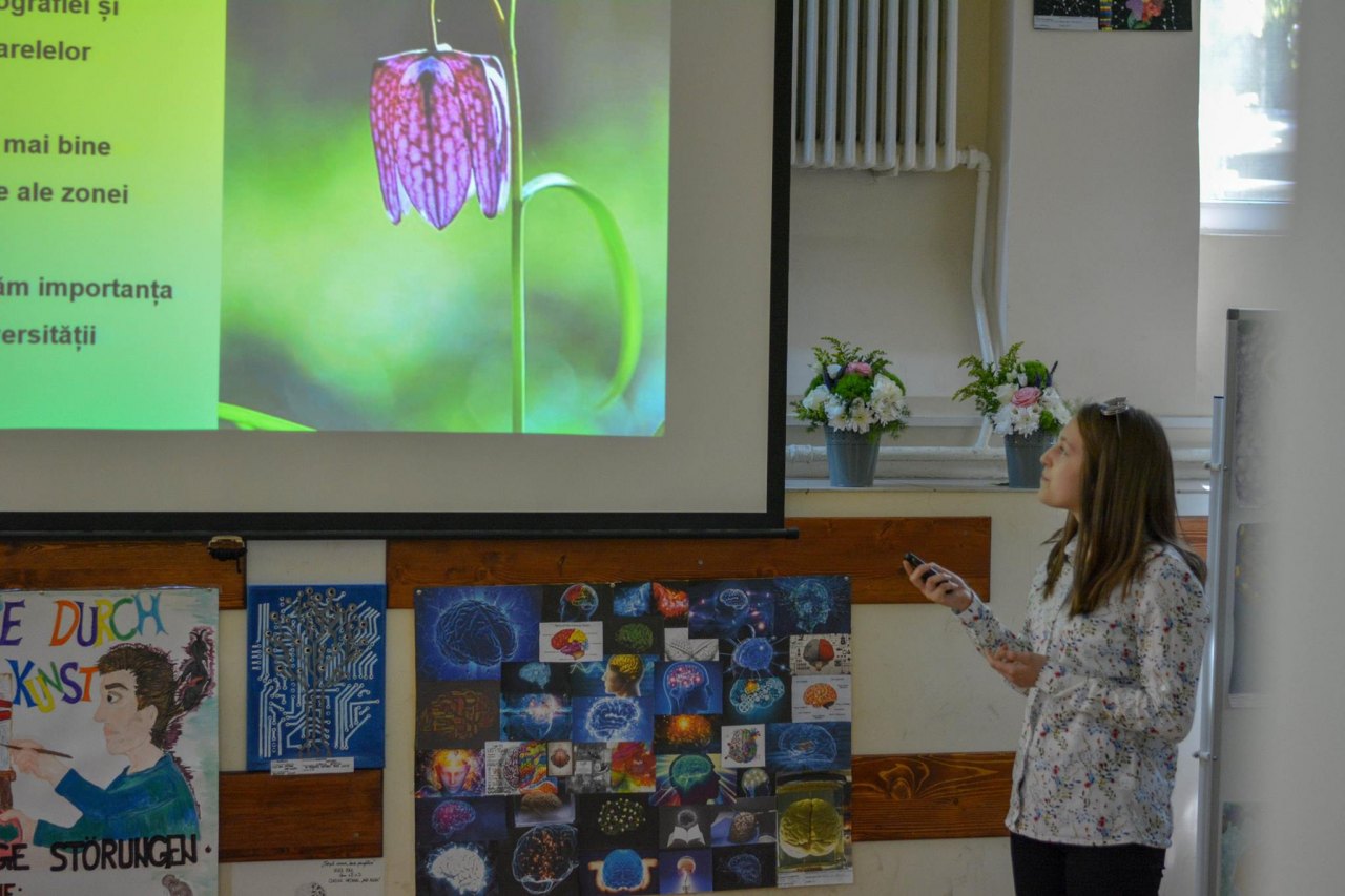 Tudomány és művészet interferenciája címmel zajlott április 19-én az a rangos nemzetközi konferencia és kiállítás, amelynek a temesvári az Ana Aslan Líceum adott otthont. A kiállításra iskolánk öt diákja, Cziprián-Kovács Kinga, Jánosi Anett, Máthé Laura, Stan Lilla-Aliz és Szlovák Imola küldött be pályamunkákat, amelyeken ritka tavaszi növényeket ábrázoltak különböző tehnikákkal. A konferencián temesvári és szerbiai diákok mutatták be, főleg angol nyelven projektjeiket, amelyek által bepillantást nyerhettünk a fraktálok világába, Leonardo da Vinci anatómiai felfedezéseibe, a színek kémiájába vagy azokba a világirodalmi remekművekbe, amelyek a pestisjárvánnyal függenek össze. Jánosi Anett és Stan Lilla-Aliz térségünk rejtett természeti értékeiről tartott előadást, amelyet az egyetemi előadótanárokból álló szakmai zsűri III. díjjal jutalmazott. A művészeti kiállítás rangsorolására is sor került a rendezvényen, ebben a szekcióban is értékelhető eredmény született iskolánk számára, hiszen Cziprián-Kovács Kinga kárpáti sáfrányt ábrázoló akvarellje dicséretben részesült.