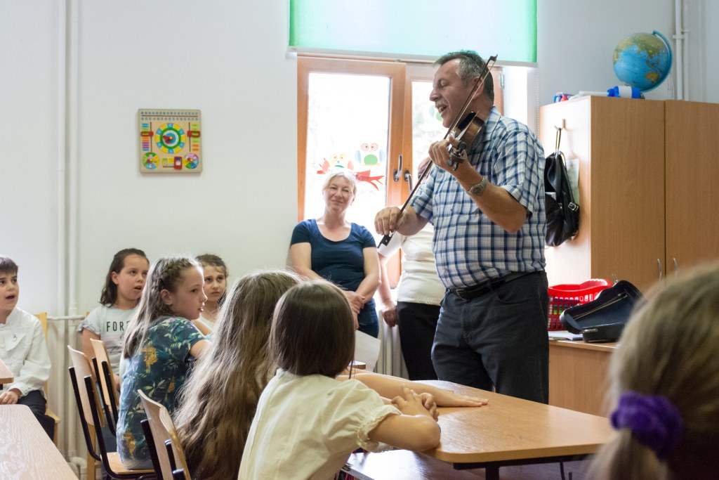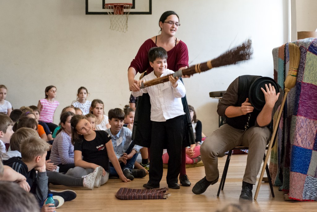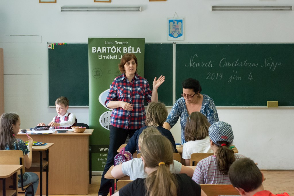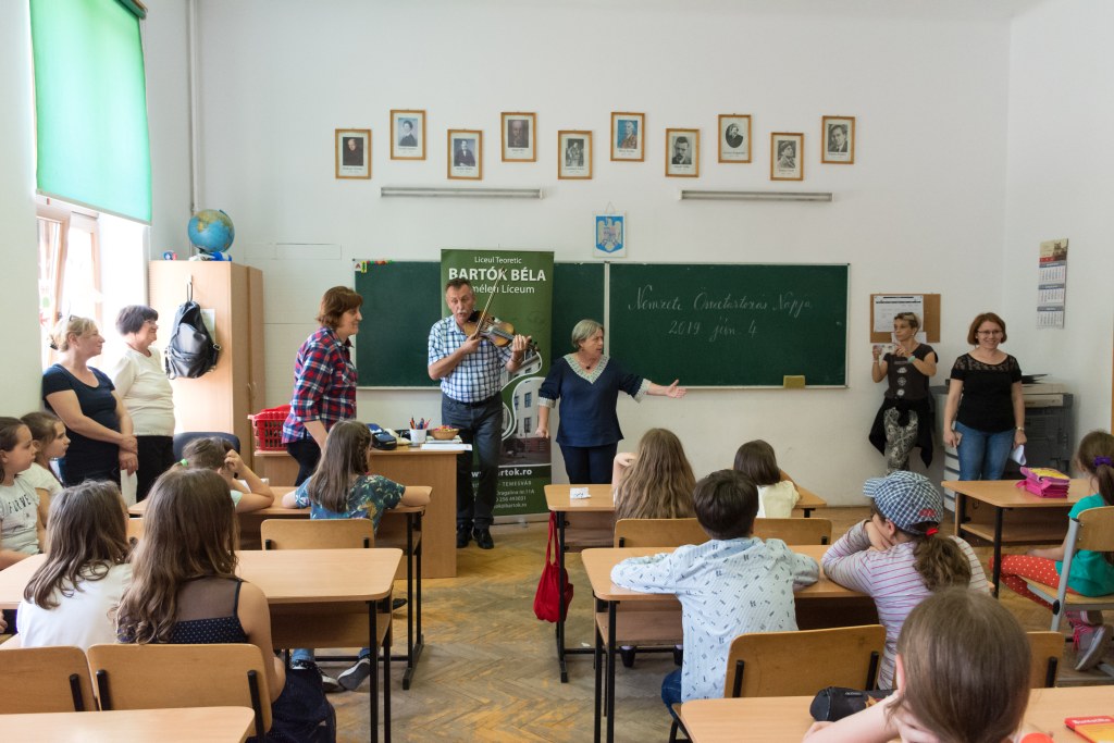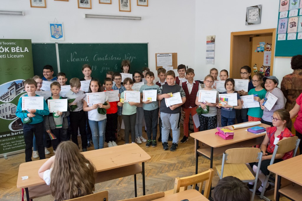 Június 4. különleges nap volt az iskola elemi tagozata számára, hiszen tizenkettedik alkalommal szerveztük meg a Gyermekek a DKMT Eurorégióban nevet viselő rendezvényt, melyre meghívtuk testvériskoláink képviselőit is. Idén az aradi Csiky Gergely Főgimnázium, a lugosi Eftimie Murgu Általános Iskola, a végvári, ötvösdi, és az újszentesi Általános Iskola, valamint a temesvári Gerhardinum Római-Katolikus Teológiai Líceum diákjai és pedagógusai voltak a vendégeink, kiváló alkalmat nyújtva a testvériskoláinkkal való szorosabb együttműködésre, barátkozásra, magyar népi kultúránk, néphagyományaink megismerésére. A résztvevő kisdiákok a rendezvény megnyitója után népdalvetélkedő és festőverseny keretén belül mutathatták be tehetségüket és tudásukat, lehetőségük volt ismerkedni, barátkozni a különböző iskolákból érkező társakkal, beletekinteni a helyi iskola mozgalmas életébe. A vetélkedők után megtekintették a Terülj, táska! - zenés mesejátékot a Szél fújja meseműhely előadásában, amelynek tagjai Budapestről érkeztek hozzánk és a gyermekeket bevonva érdekes előadásmódban, népi hangszerekkel megfűszerezve vezették be a résztvevőket a mese csodálatos világába. Ugyanakkor lehetőség nyílt egy igazi jurtát megnézni, melyet a temesvári Losonczy István Hagyományőrző Egyesület állított fel az iskola udvarán.