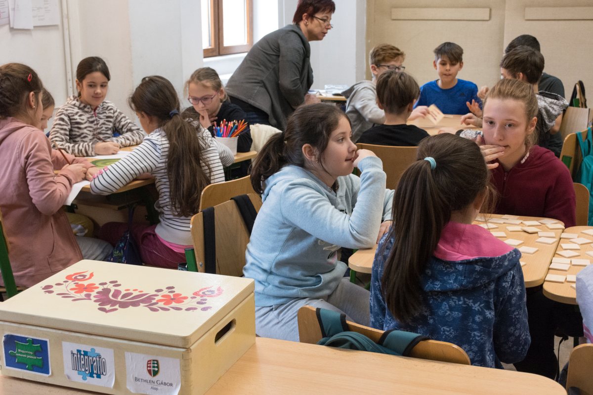 Az 5. osztályos tanulók magyarságismereti játékokat játszottak Gecse-Madaras Júlia, Fazakas Enikő és Major Gabriella segítségével és közreműködésével. Az eszközök az Integratio Alapítvány Magyarságismereti játékcsomagjából lettek kiválasztva – szókígyó, memóriajáték, Logico keretben hungarikumos kérdéssor. A lelkes résztvevők olyat is játszottak, hogy a magyar irodalom híres műveit és magyar rajzfilmeket kellett összepárosítsanak a címükkel.