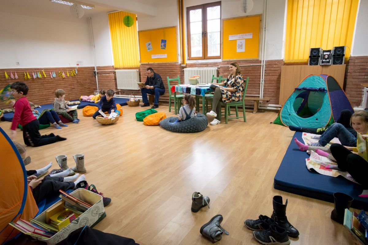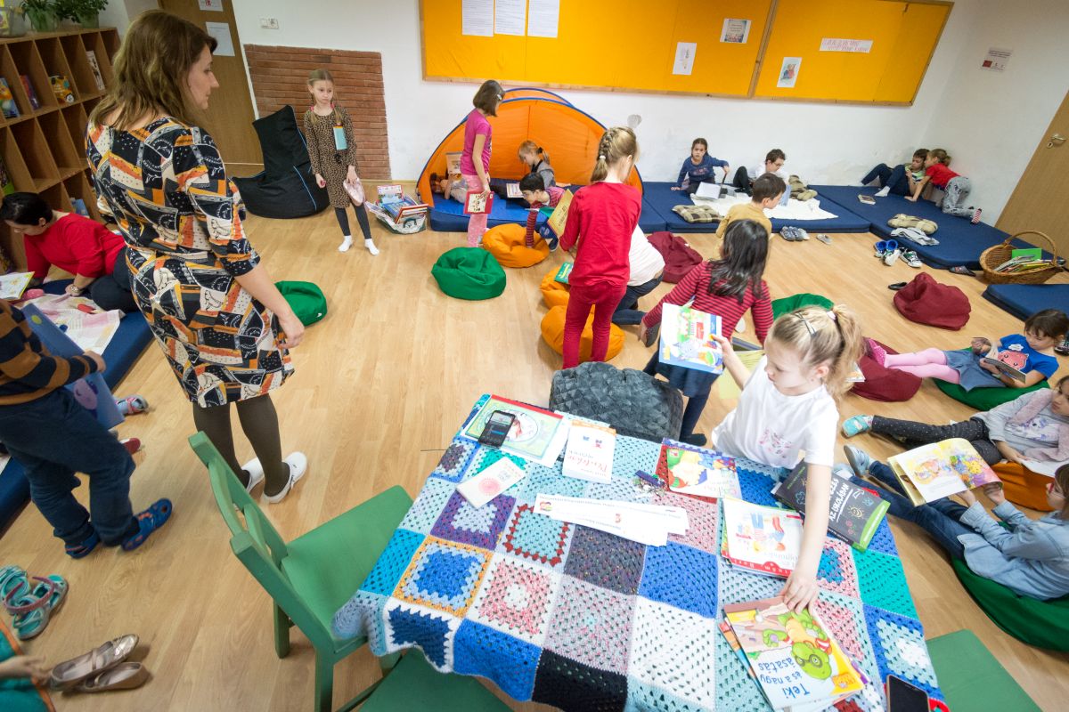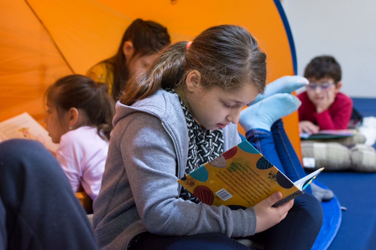 Képes beszámoló az elemi osztályok Olvasáskihívás programjáról, az 1-es teremben kialakított olvasókuckóról