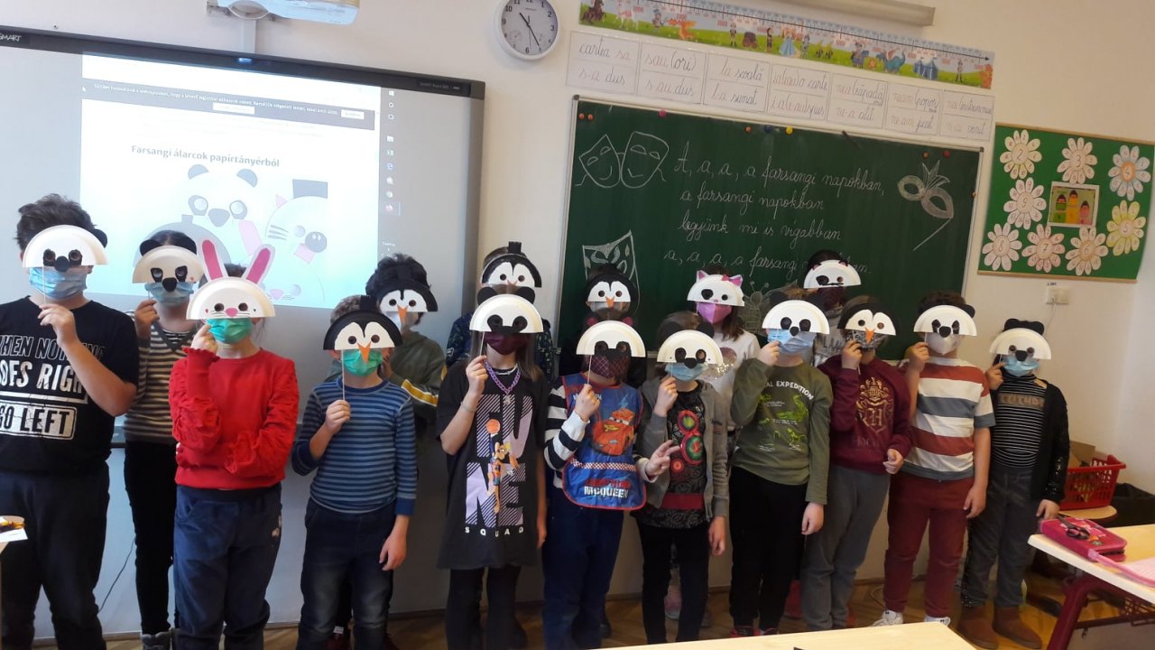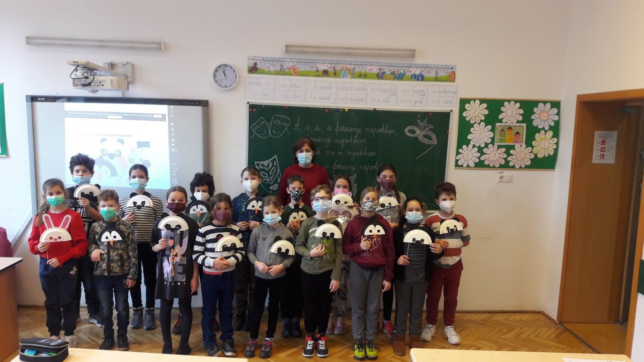 Február 17-én az újratalálkozás öröme valamint a farsangi mókázás mosolyt csalt a 8-as számú Napközis Óvoda növendékei s a hagyományos III. osztályos kisdiákok arcára. Habár online felületen találkoztak, mégis sikerült élményteli pillanatokat együtt eltölteni. A gyermekek egy farsangi népszokásokat bemutató kisfilmet tekintettek meg, majd vicces farsangi álarcokat terveztek, készítettek. A találkozó végén a harmadikosok vidám versekkel, farsangi énekekkel örvendeztették meg kis társaikat. A találkozó után az iskolásoknak csapatépítő, szórakoztató játékokban volt részük.