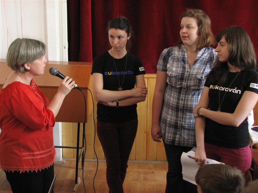 Arad, Kisjenő, Nagyenyed és Marosvásárhely után, május 9-én, az Európai Unió Napján újból a temesvári Bartók Béla Elméleti Líceumba érkezett az Integratio Alapítvány EU-karavánja.