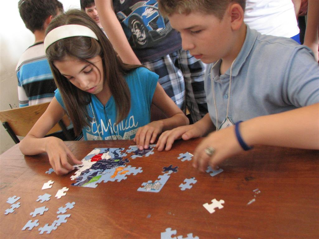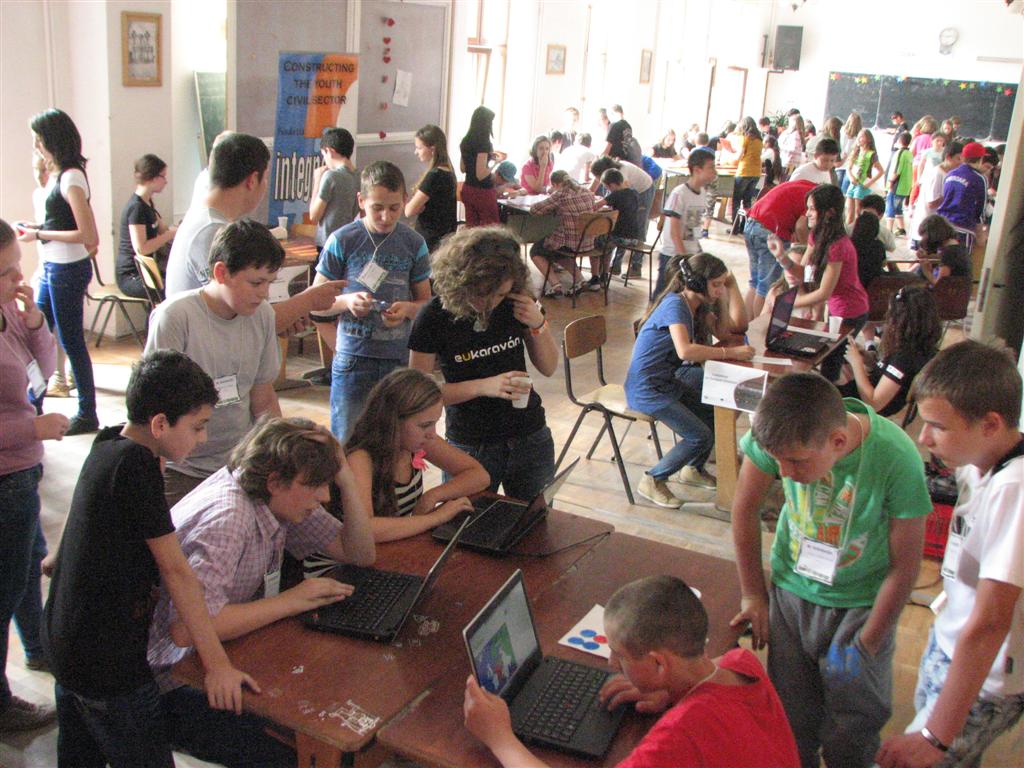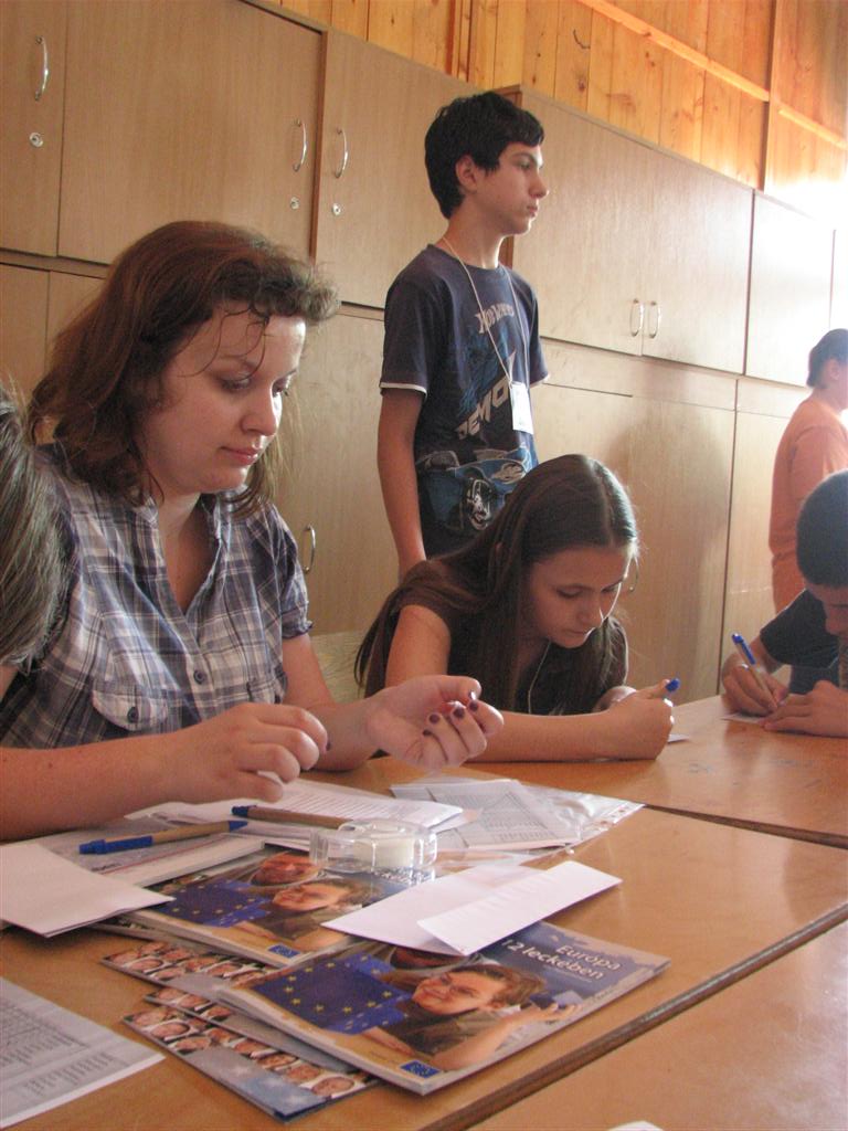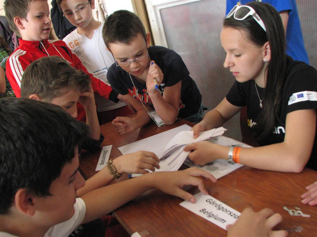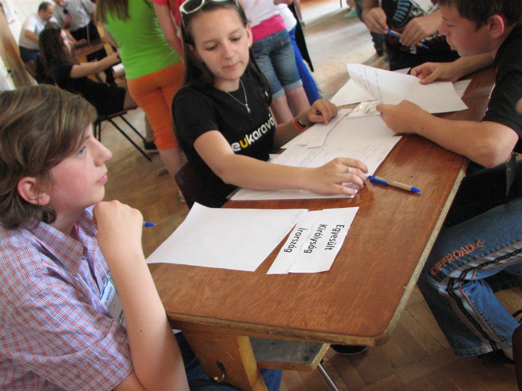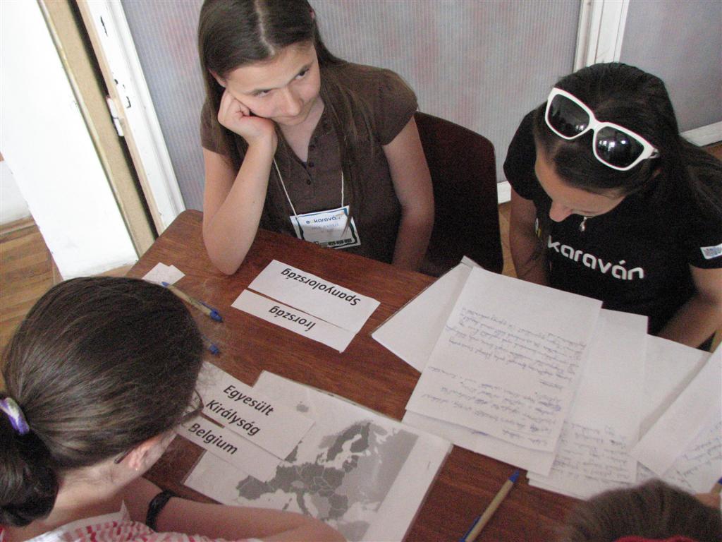 A bartókos, illetve a dettai, lugosi, óteleki és zsombolyai V–VIII.-os magyar gyerekek az EU-karaván 20 műhelyében tesztelhették az unió országaival kapcsolatos ismereteiket. A Bartók Béla Líceum dísztermében és a szomszédos osztályokban nyüzsgő 170 gyerek EU-puzzlet rakott ki, európai népviseleteket, dallamokat, ételkülönlegességeket, épületeket és építészeti stílusokat, zászlókat azonosított, európai ország-várost játszott, fővárosokat talált ki, EU-s statisztikai adatokra tippelt stb.