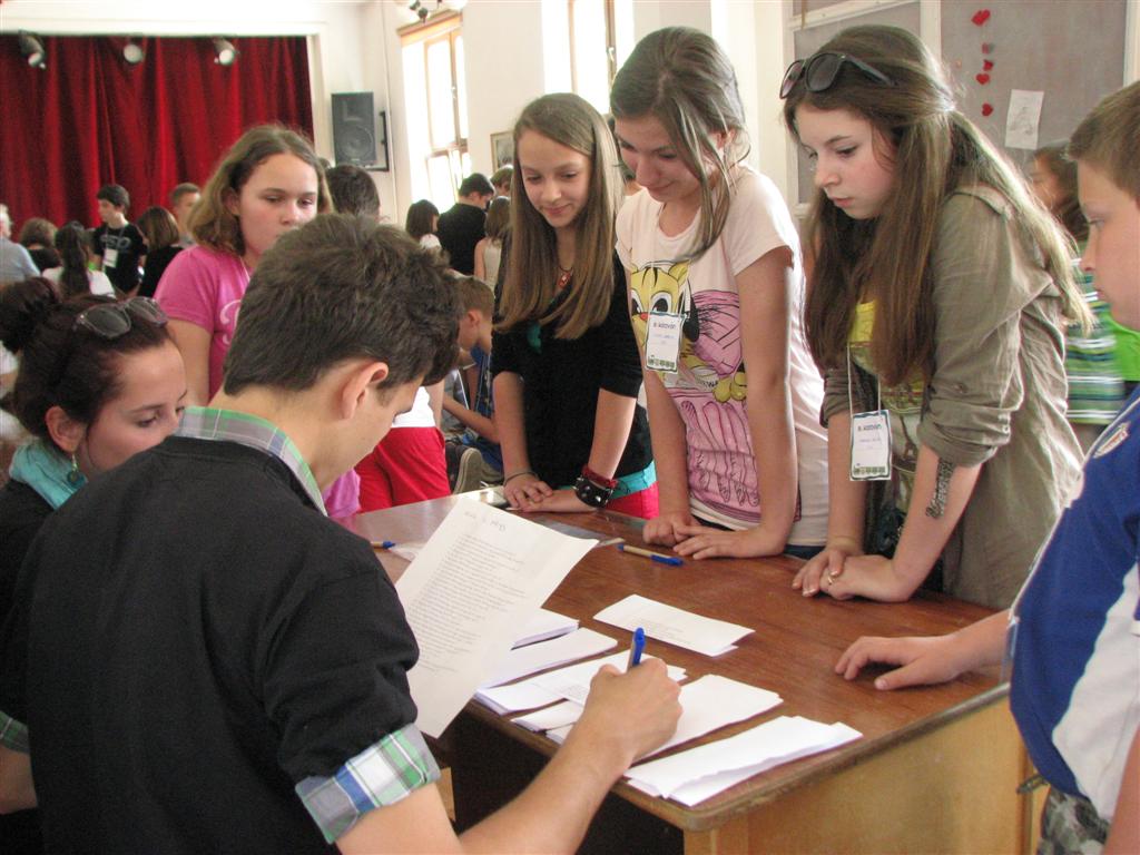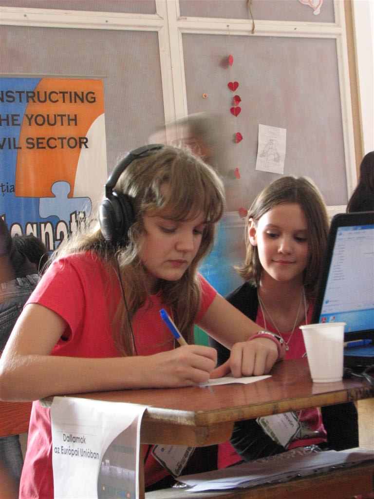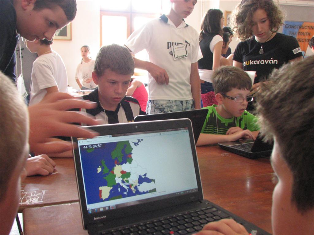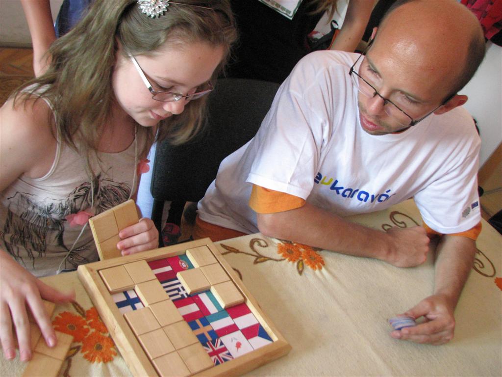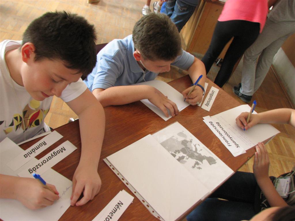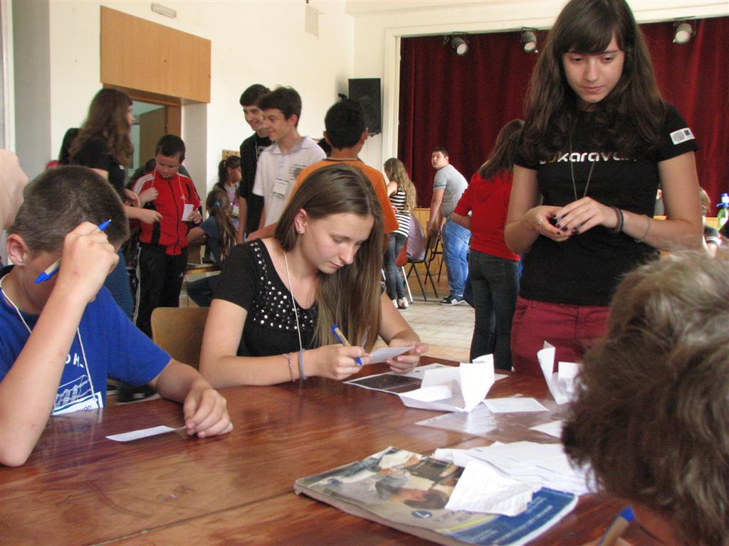 A bartókos, illetve a dettai, lugosi, óteleki és zsombolyai V–VIII.-os magyar gyerekek az EU-karaván 20 műhelyében tesztelhették az unió országaival kapcsolatos ismereteiket. A Bartók Béla Líceum dísztermében és a szomszédos osztályokban nyüzsgő 170 gyerek EU-puzzlet rakott ki, európai népviseleteket, dallamokat, ételkülönlegességeket, épületeket és építészeti stílusokat, zászlókat azonosított, európai ország-várost játszott, fővárosokat talált ki, EU-s statisztikai adatokra tippelt stb.