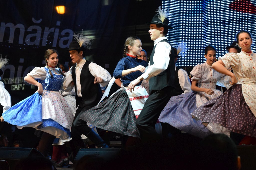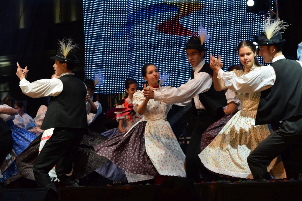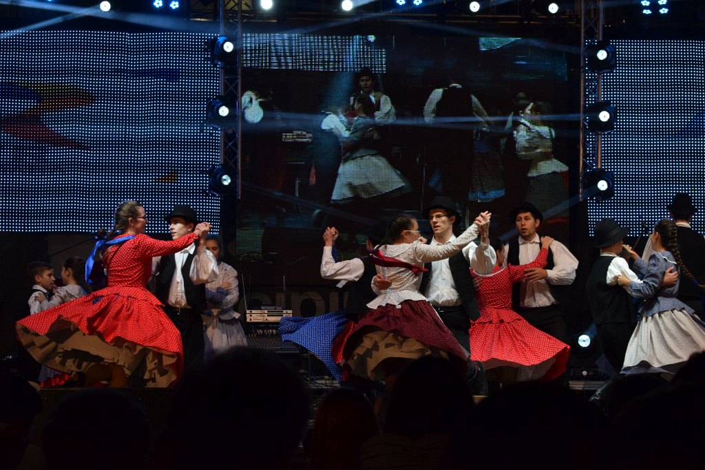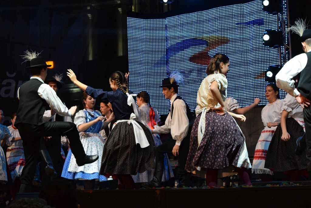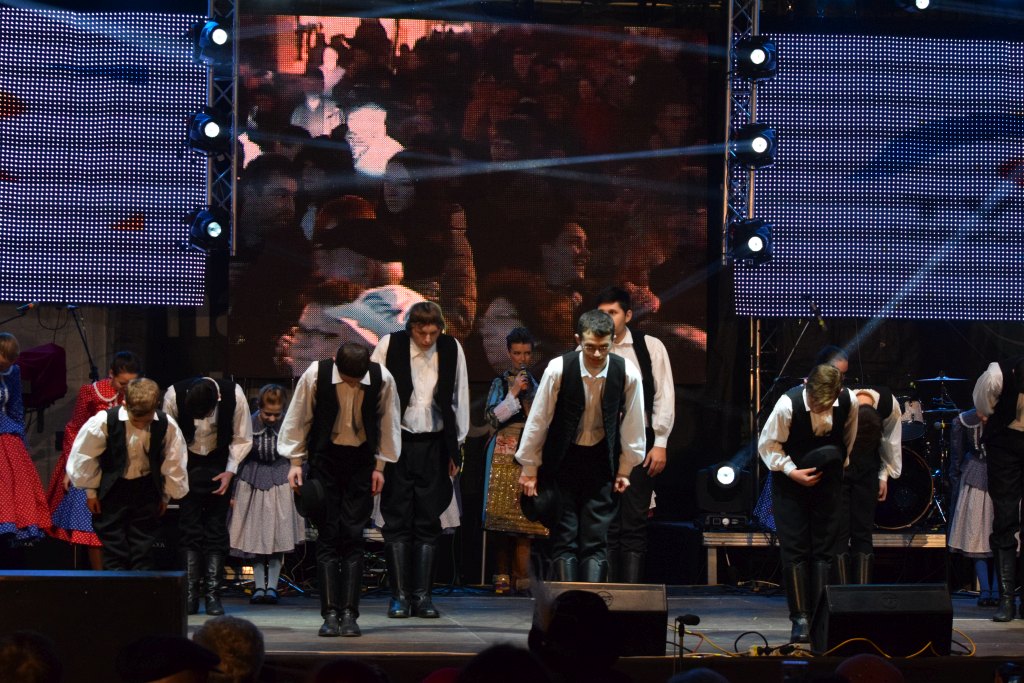 Néptánccsoportok fellépése a főtéren